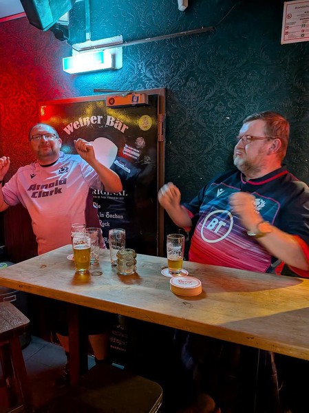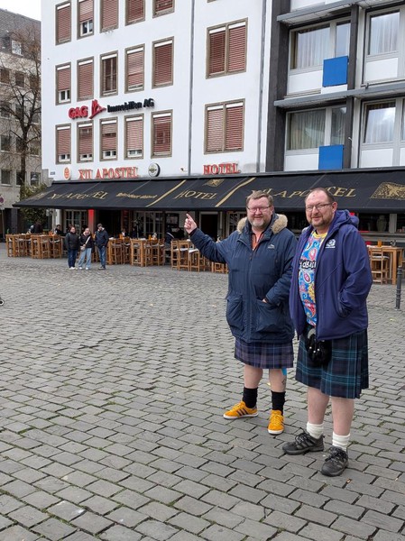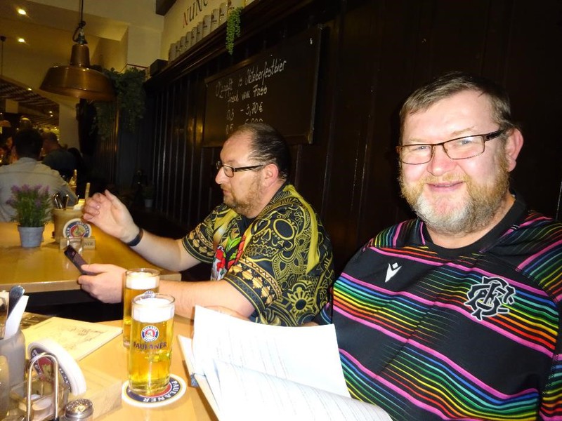 Sunday involved going to the Viktoria Köln/Hansa Rostock game, it seems to be a Köln Sunday pastime to go for lunch which meant we were struggling to get into one of our usual haunts, however Zio’s desire to visit Sünner im Walfisch was a definite success, especially when chatting to a well-tattooed gent who was amazed that we were going to the game. As Hansa have a fairly bad reputation, it looked like all the Ultras from Westphalia had combined to go to the game which was almost sold out! Indeed, the difference in the ground from our last visit to it in 2016 was quite marked. Hansa won the match quite easily 4-2. We completed a hat-trick of Asia Gourmet’s with the amount of duck Pedro got on his plate increasing remarkable over the three trips as well. We ended up in Zur Eigelschänke which is an interesting bar to put it mildly!
