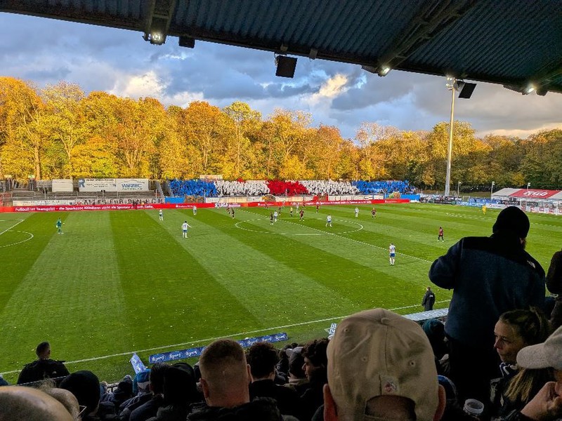 Saturday’s game was a Regional League West encounter between Bonner SC and SC Wiedenbrück which the home side won 2-1 and I think that’s about all you can say about that match albeit it was slightly better than the epic Koblenz match from yesteryear! Fortunately, the Paulaner Brauhaus was available for post-match refreshments! Later on, that evening we went back to Köln for another Asia Gourmet, a visit to Shorty’s, then arguably one of the best White Russian’s ever in the Cubana bar, ok several along with a mojito! Finally ending in the Kwartier Latäng which was also disgustingly cheap!